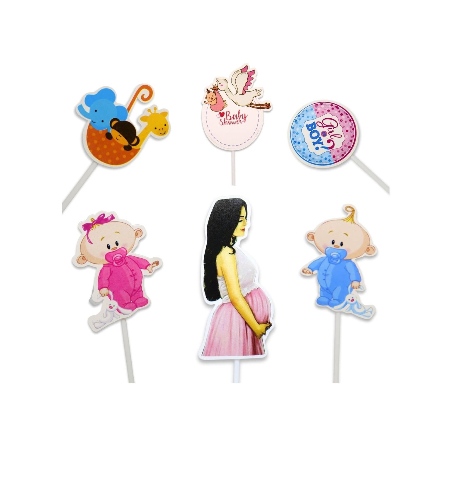 Our package includes 6 pieces of baby shower paper toppers, perfect for adding a splash of color and delight to your celebration. Crafted with a vibrant and whimsical multicolor design, these toppers are guaranteed to bring joy to any baby shower cake or cupcakes.