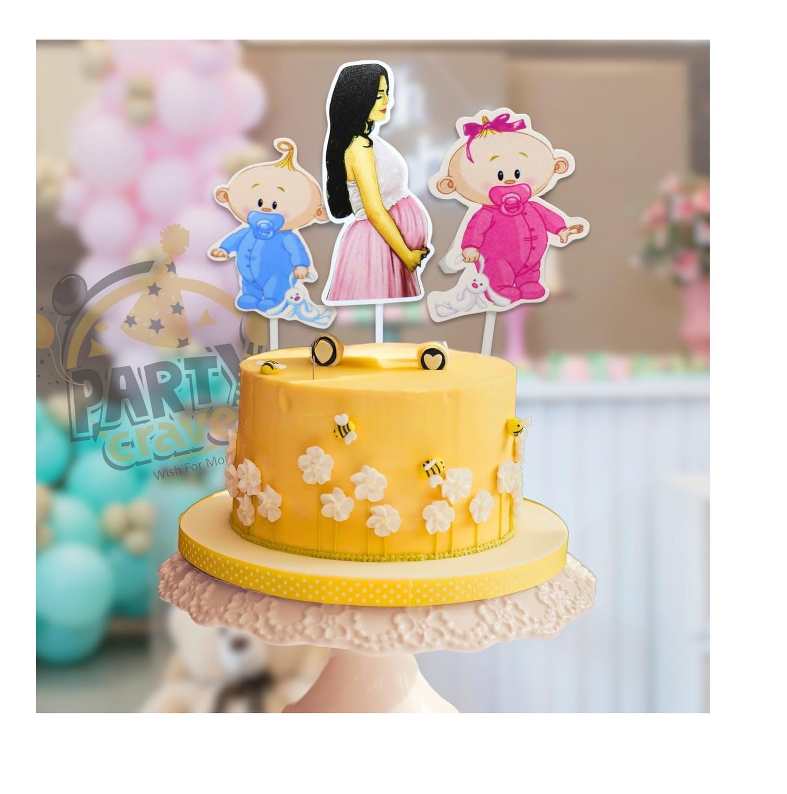 Our toppers feature a delightful array of colors, providing a playful and festive touch to your baby shower. The thoughtfully designed patterns enhance the cheerful ambiance of your celebration. Each topper is meticulously crafted to ensure a high-quality decorative experience.